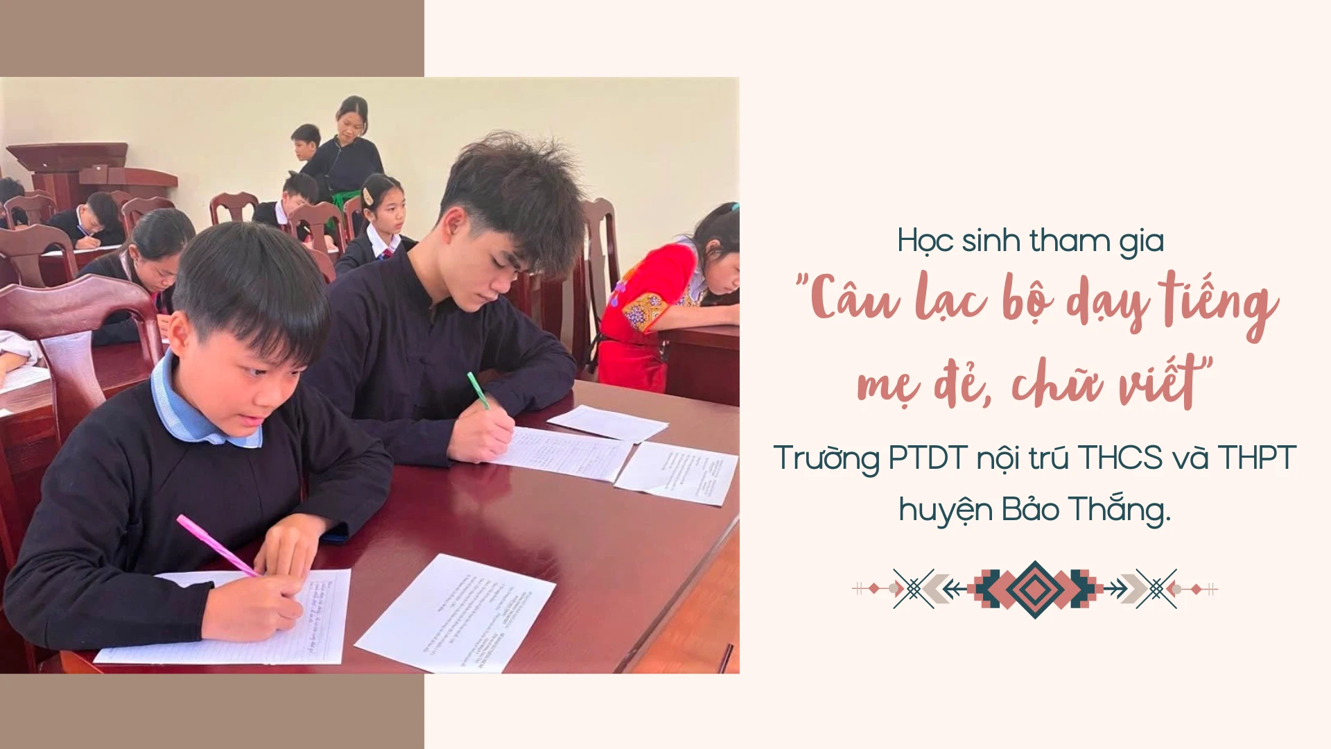 Trường PTDT nội trú THCS và THPT huyện Bảo Thắng là trường học đầu tiên của tỉnh Lào Cai thành lập Câu lạc bộ dạy tiếng mẹ đẻ, chữ viết cho học sinh. Mỗi tuần 1 lần, với “giáo trình” tự biên soạn qua tìm hiểu thực tế kết hợp sưu tầm và tham khảo trên internet, các em trong câu lạc bộ sẽ bàn chủ đề cho buổi sinh hoạt định kỳ, như giao tiếp cơ bản, vật dụng trong gia đình, một số hoạt động hằng ngày… Sau những buổi sinh hoạt định kỳ của câu lạc bộ, học sinh thường xuyên giao tiếp với nhau bằng ngôn ngữ mẹ đẻ; trau dồi, học hỏi lẫn nhau, làm phong phú hơn vốn từ của mình. Ngoài ra, câu lạc bộ còn tổ chức nhiều hoạt động văn hóa, văn nghệ mang tính cộng đồng tại các buổi sinh hoạt nội trú, sinh hoạt tập thể đầu tuần, các ngày lễ lớn… để học sinh có cơ hội thực hành tiếng mẹ đẻ và tìm hiểu nét văn hóa đặc sắc.