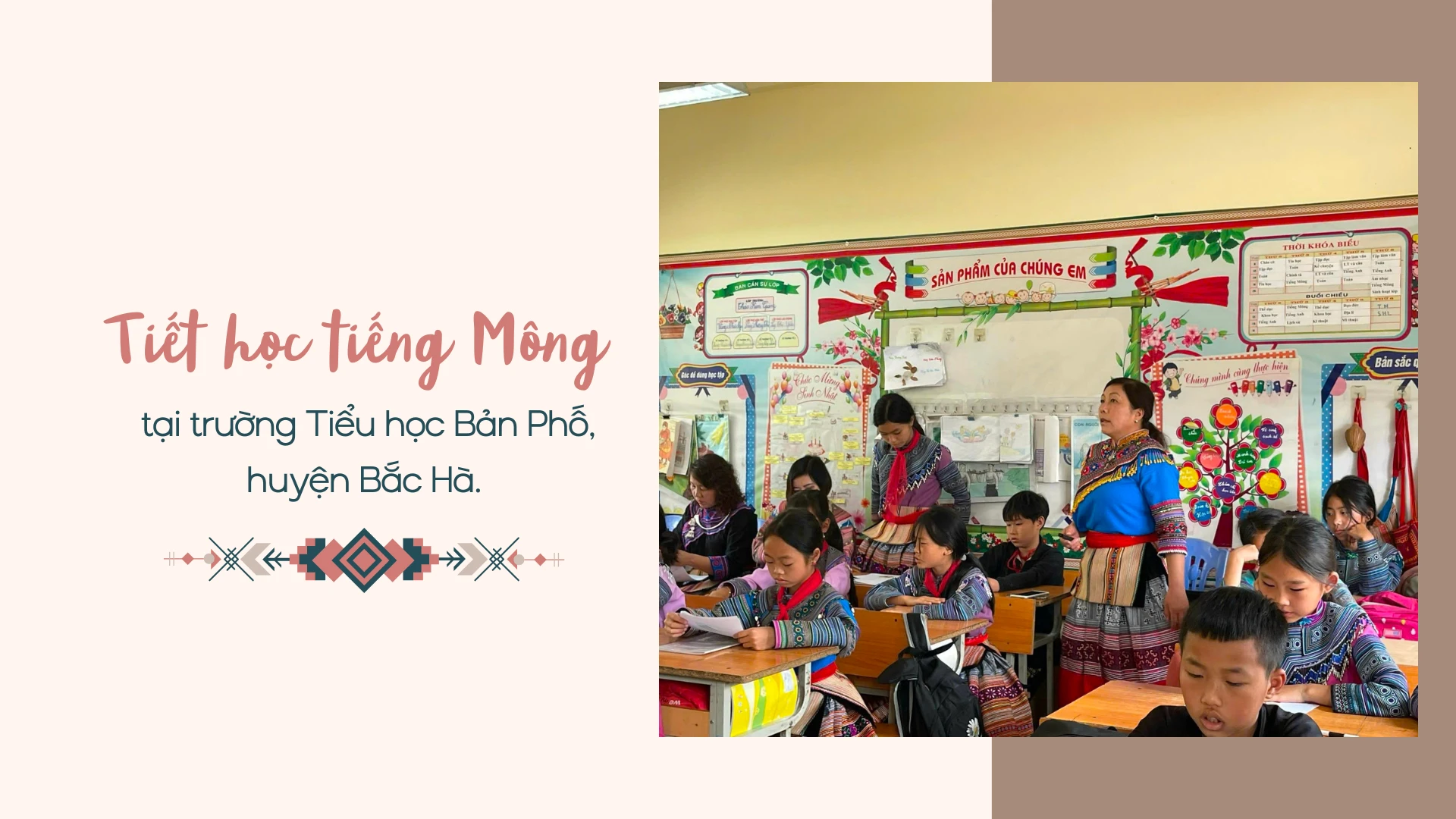 Ngoài chú trọng giáo dục đa ngôn ngữ cho học sinh, các trường tiểu học trên địa bàn thị xã Sa Pa còn thực hiện hiệu quả việc duy trì những giờ học ngoại khóa về văn hóa truyền thống của người Mông; mặc trang phục truyền thống dân tộc Mông 2 buổi/tuần, từ đó tạo môi trường học tập gắn với bản sắc văn hóa dân tộc.