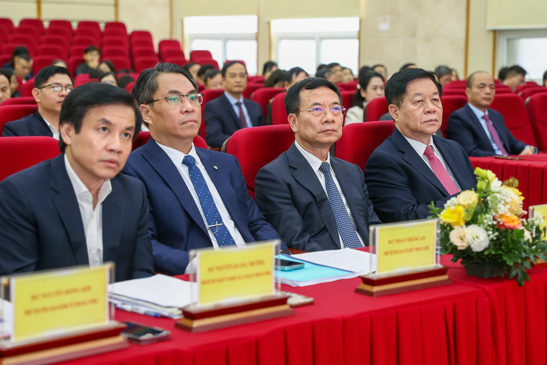 Trưởng Ban Tuyên giáo Trung ương Nguyễn Trọng Nghĩa, Bí thư Ban Cán sự Đảng - Bộ trưởng TT&TT Nguyễn Mạnh Hùng cùng các đại biểu dự hội nghị.