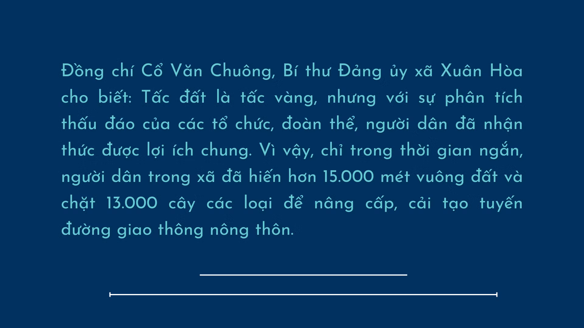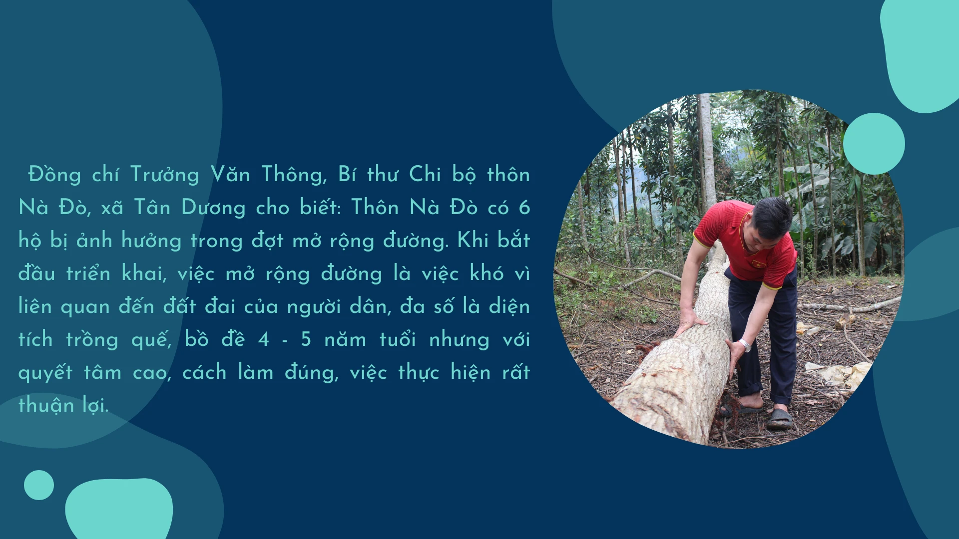 Cấp ủy chi bộ đã họp lấy ý kiến người dân và tuyên truyền lợi ích khi có đường giao thông thuận lợi. Với những hộ chưa đồng ý, chi bộ giao cho các đảng viên phụ trách tìm hiểu tình hình cụ thể từng trường hợp, nắm tâm tư, nguyện vọng của các hộ để chi bộ đề xuất hướng giải quyết với xã. Bằng nhiều phương pháp, cách thức tuyên truyền với phương châm “mưa dầm thấm lâu”, 100% hộ đã chặt cây, đồng thuận hiến đất mở rộng tuyến đường.