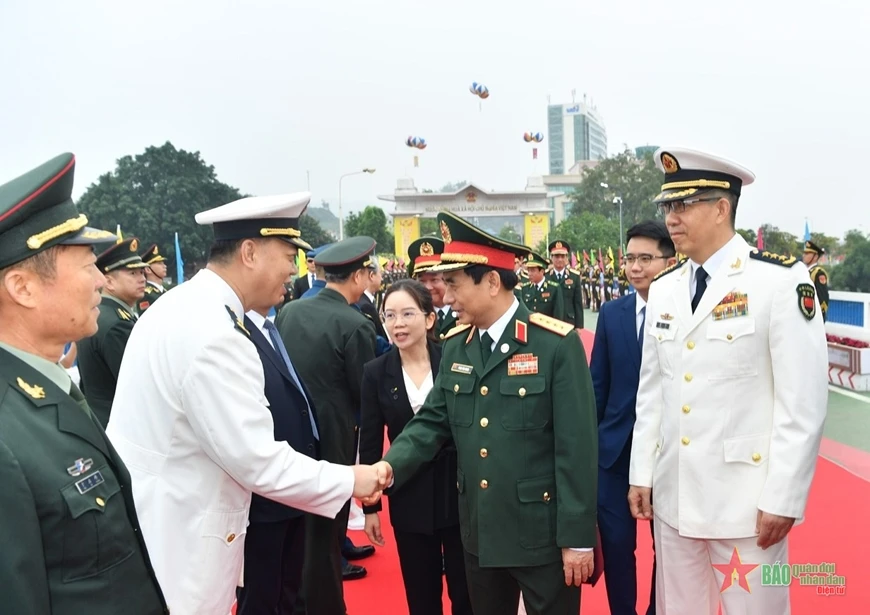 Bộ trưởng Phan Văn Giang và Bộ trưởng Đổng Quân cùng lực lượng tuần tra chung của hai nước. Ảnh: TRỌNG HẢI