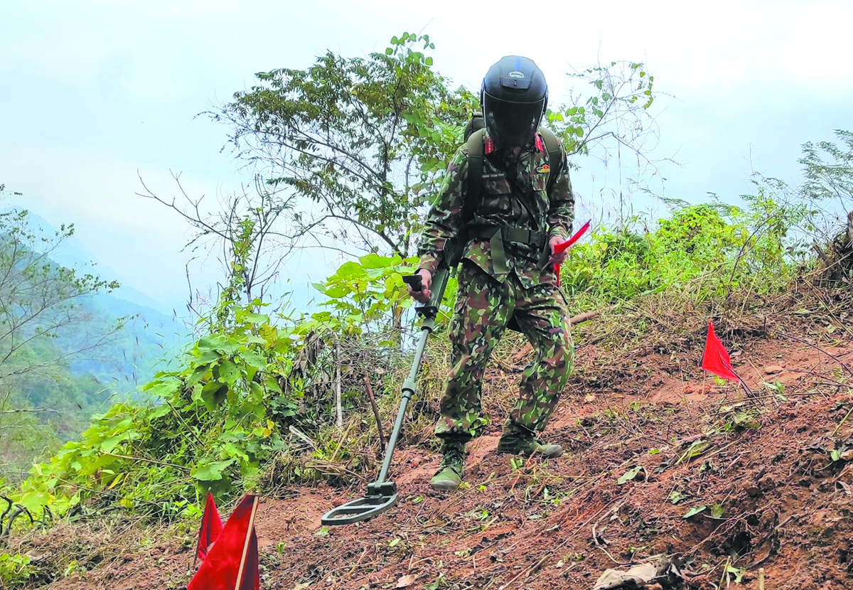 Trên dọc dải biên cương của Lào Cai, tuy mật độ bom, mìn, vật nổ không còn dày đặc như trước nhưng vẫn tiềm ẩn những mối nguy hiểm nhất định trong lòng đất. Do thời gian, đất đá vùi lấp, địa hình thay đổi, điều kiện thời tiết vùng biên giới khắc nghiệt khiến việc tìm kiếm, rà phá bom mìn, vật nổ gặp nhiều khó khăn. Năm 2020, bộ đội công binh của Lào Cai đã tham gia rà phá bom, mìn, vật nổ tại huyện Vị Xuyên, tỉnh Hà Giang với diện tích 70 ha; năm 2019 tham gia rà phá bom, mìn, vật nổ tại huyện Mường Khương gồm 30 ha; năm 2018, rà phá 10 ha tại tỉnh Hà Giang. Trong mỗi năm, lực lượng đã phát hiện và tiêu hủy hàng nghìn quả mìn, lựu đạn, đạn cối, đạn pháo... trả lại mặt bằng “sạch” cho nhiều vùng đất.