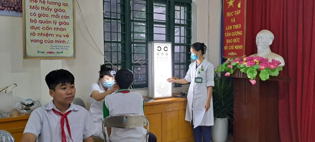 Đoàn khám tình nguyện do Bác sĩ CK1 Nguyễn Thị Song Hương - Phó Giám đốc Bệnh viện trực tiếp chỉ đạo cùng với sự tham gia của các bác sỹ có chuyên môn tay nghề cao ở các chuyên khoa Mắt, Răng hàm mặt, khám Nội tổng hợp... đã tham gia thăm khám và sàng lọc, tư vấn cho hơn 280 em học sinh. Tại chương trình các em học sinh được kiểm tra cân nặng, chiều cao, thị lực, kiểm tra tim phổi, kiểm tra tai, mũi, họng, răng miệng,…