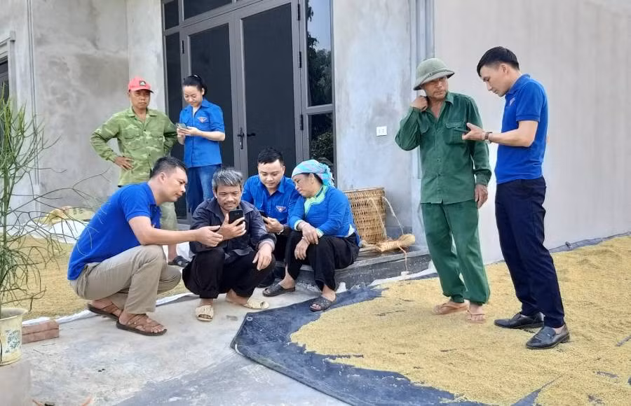 Đoàn xã Quang Kim ra quân hỗ trợ người dân cài đặt định danh điện tử.