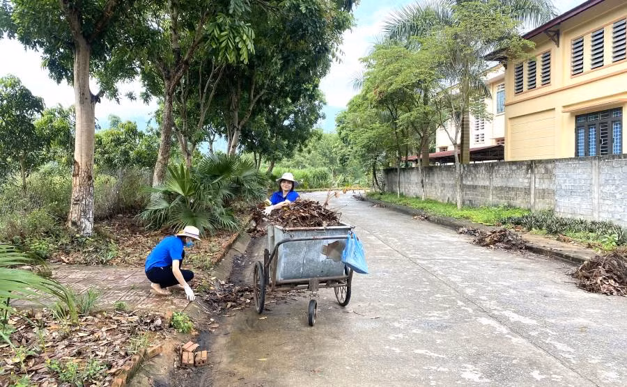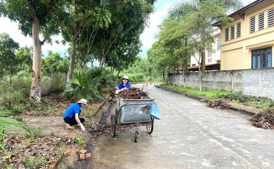 Đoàn thanh niên tham gia vệ sinh môi trường.