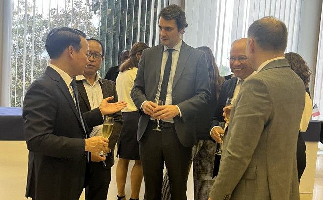 Bí thư Tỉnh ủy Đỗ Đức Duy trao đổi với Đại sứ Việt Nam tại Pháp Đinh Toàn Thắng; lãnh đạo Hội đồng tỉnh Val-de-Marne