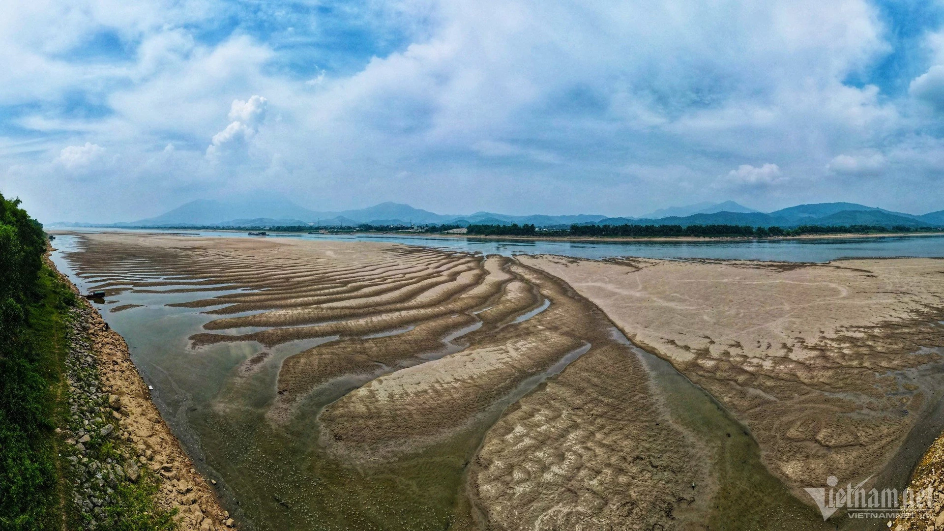 Hạ lưu sông Đà nơi giáp ranh hai giữa Hòa Bình và Phú Thọ cạn trơ đáy hồi tháng 6/2023.
