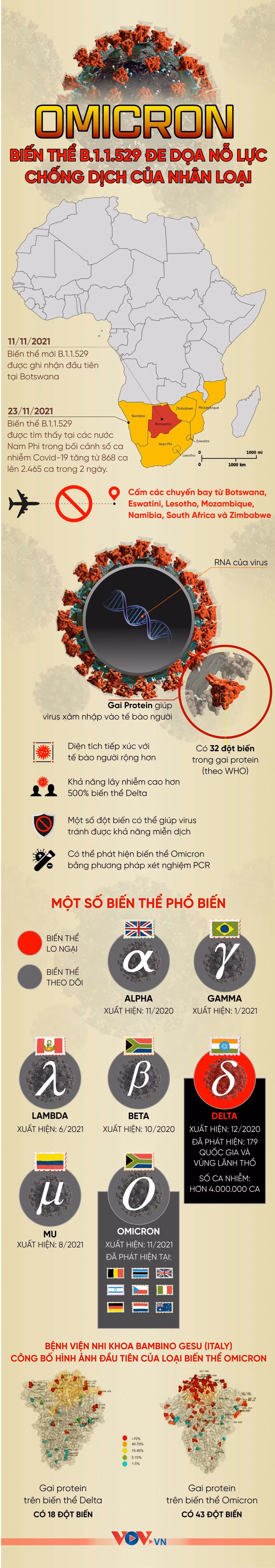 Ngày 28/11, Bộ Y tế cho biết, ngày 25/11/2021, Tổ chức Y tế thế giới đã thông báo ghi nhận biến chủng B.1.1.529 (Omicron) đáng lo ngại của virus SARS-CoV-2. Biến thể này được phát hiện tại một số quốc gia ở khu vực phía nam châu Phi như Nam Phi, Botswana...