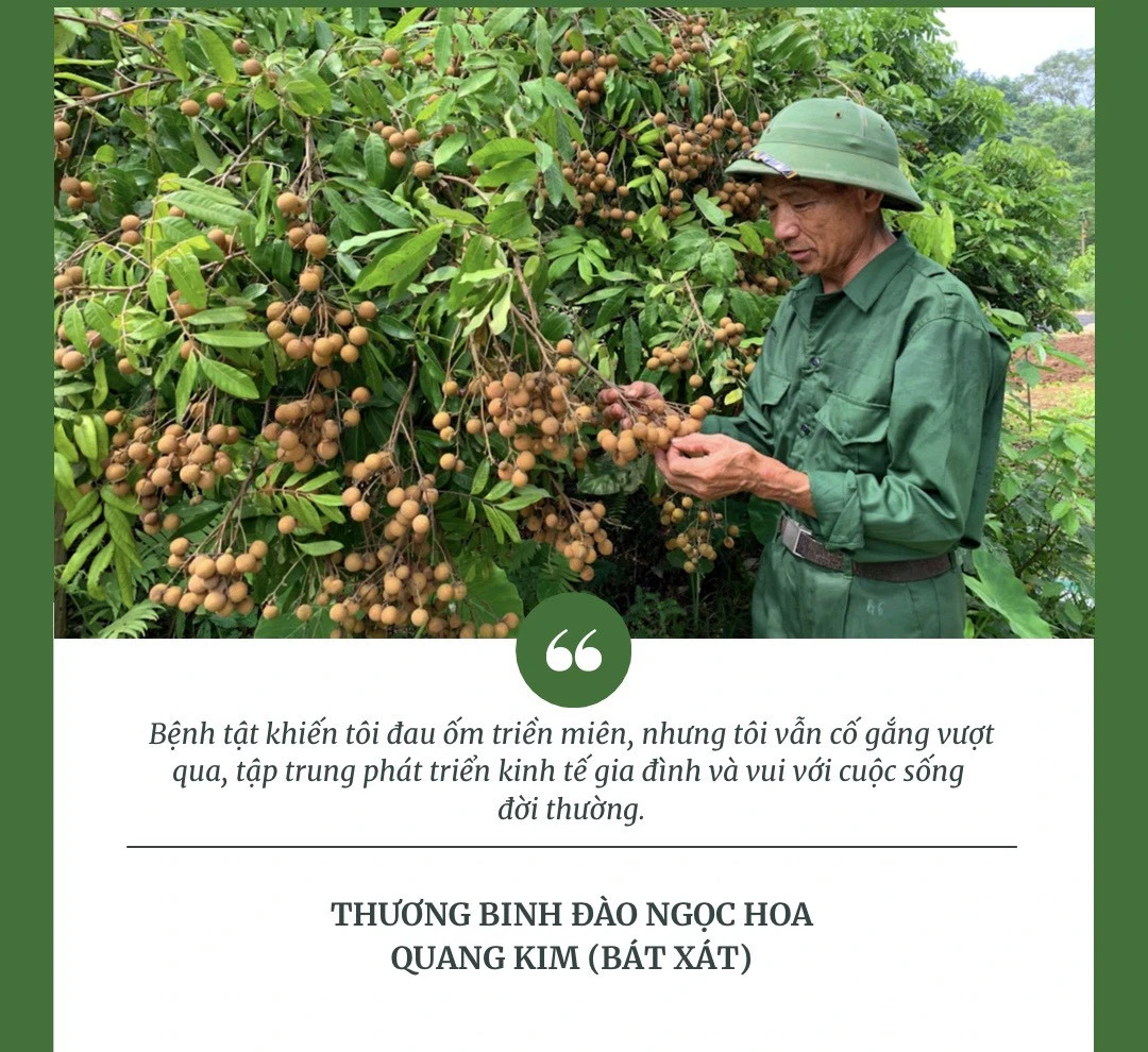 Ở tuổi 72, thương binh Đào Ngọc Hoa ở thôn An Quang (xã Quang Kim, huyện Bát Xát) không bao giờ quên những ngày tháng chiến đấu bảo vệ Tổ quốc tại chiến trường Bình Định năm 1974. Đó là khoảng thời gian phơi phới của tuổi đôi mươi, đối mặt với bao hiểm nguy, xông pha nơi trận mạc. Sau khi Chiến dịch giải phóng miền Nam thắng lợi, ông Hoa được phục viên, trở về quê nhà và xây dựng gia đình ở Hưng Yên.