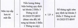 15 năm đầu công tác có đóng BHXH bắt buộc được trợ cấp 4 tháng tiền lương hiện hưởng. Đối với số năm còn lại (từ năm thứ 16 trở đi), mỗi năm được trợ cấp bằng 0,5 tháng tiền lương hiện hưởng.