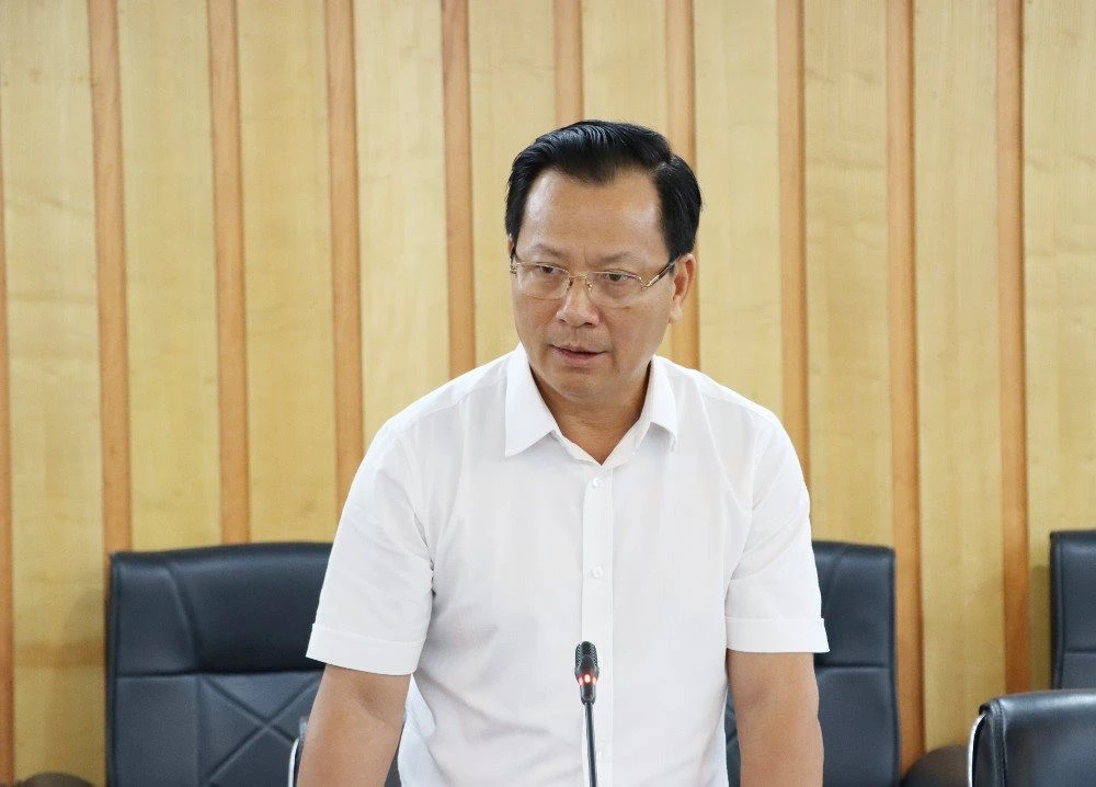 Phó Chủ tịch UBND tỉnh Lào Cai, ông Hoàng Quốc Khánh phát biểu tại cuộc họp.