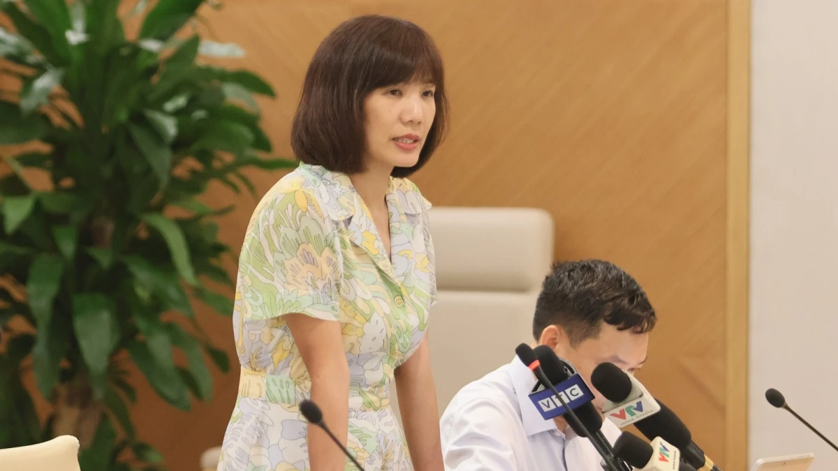 Bà Nguyễn Thị Thanh Huyền, Phó Cục trưởng Cục Phát thanh Truyền hình và Thông tin điện tử trả lời câu hỏi của phóng viên tại buổi họp báo.