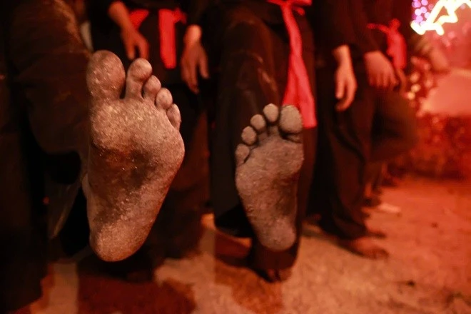 Đặc biệt nhất là nghi thức "sài cỏ" lao vào bếp than đỏ rực để "tắm than" – gột rửa, thanh sạch thân tâm trước khi đón tổ tiên. Khi bếp than được nhóm đỏ rực, các thanh niên trong trạng thái tập trung cao độ, theo hiệu lệnh của thầy cúng, lần lượt nhảy qua than lửa mà không bị bỏng – biểu hiện rõ nét của niềm tin tâm linh và sự che chở của thần linh.
