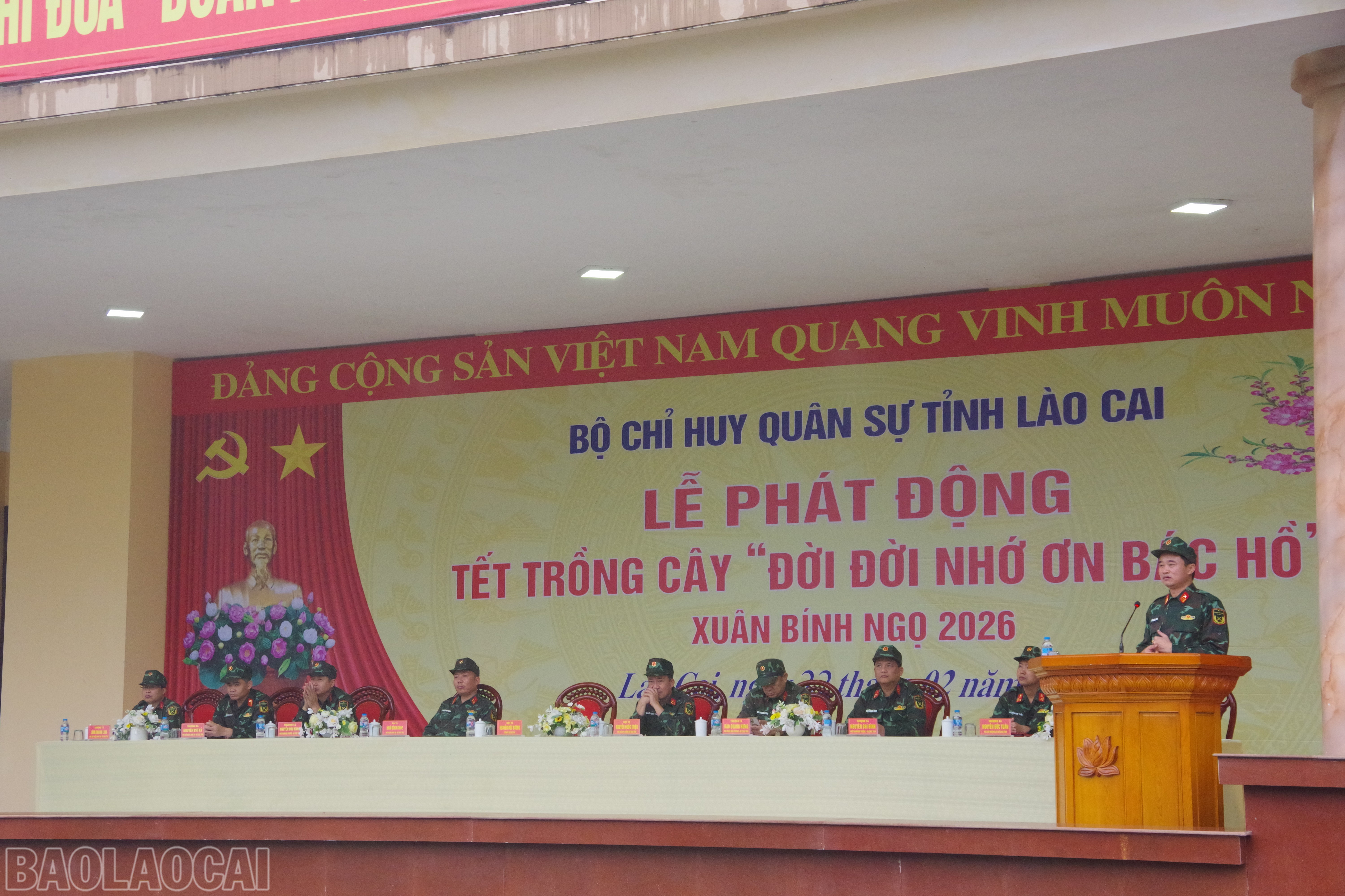 Phát biểu tại buổi lễ, Đại tá Nguyễn Đức Cương - Phó Bí thư Thường trực Đảng ủy Quân sự tỉnh, Chính ủy Bộ Chỉ huy Quân sự tỉnh yêu cầu các cơ quan, đơn vị và mỗi cán bộ, chiến sĩ tích cực trồng cây xanh, bảo đảm cây phát triển tốt. Đồng thời, gắn việc trồng cây với các mục tiêu phát triển kinh tế - xã hội của địa phương; giải quyết các vấn đề về an sinh xã hội, bảo vệ môi trường và xây dựng doanh trại chính quy xanh, sạch, đẹp, xây dựng môi trường văn hoá tốt đẹp, lành mạnh.
