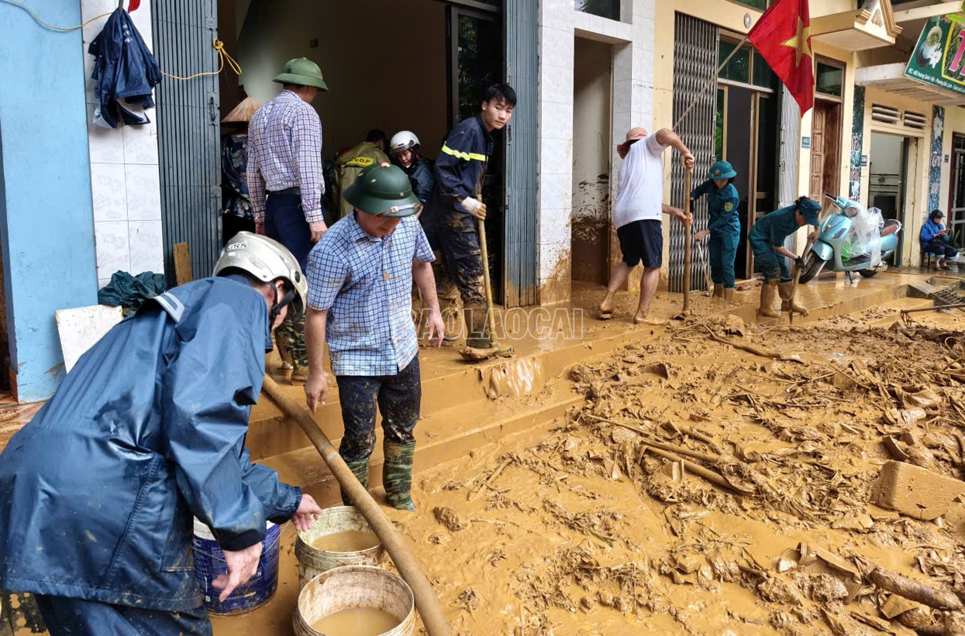 Chính quyền và Nhân dân phường Cam Đường khắc phục hậu quả mưa lũ.