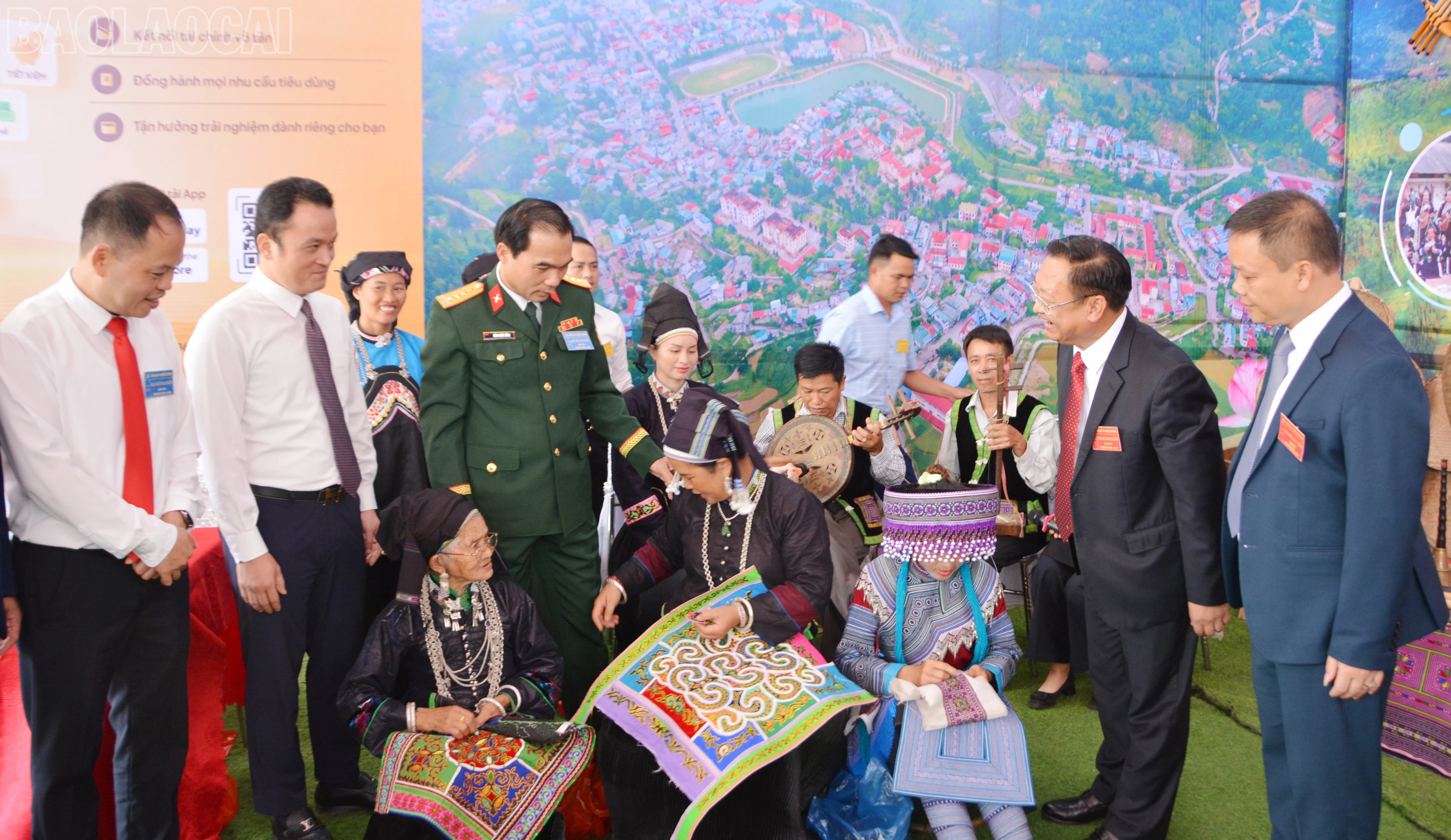 Các đại biểu trò chuyện với người dân và tham quan khu trưng bày tại đại hội.