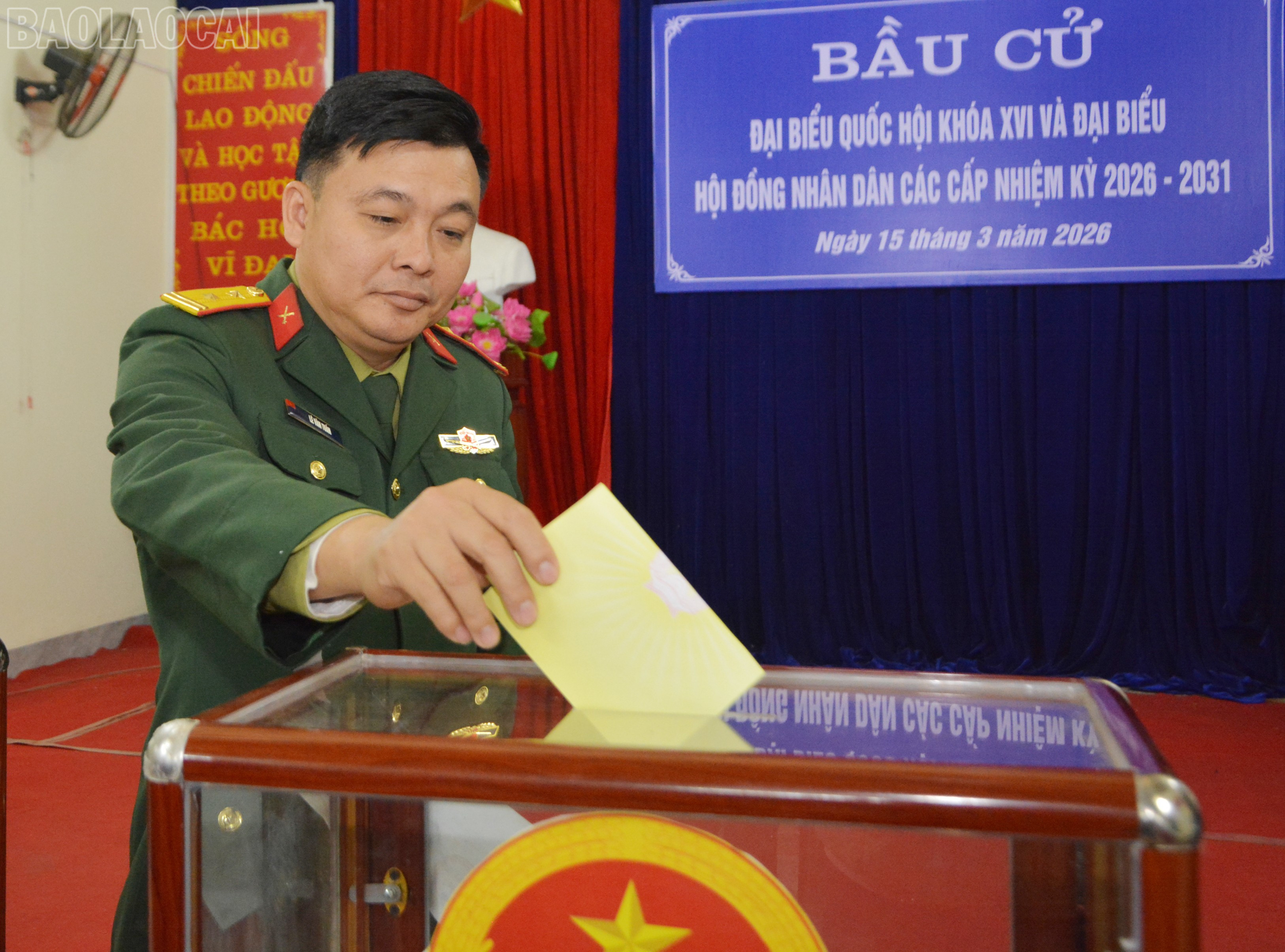 Sáng 15/3, hòa trong không khí tưng bừng, phấn khởi của Ngày hội non sông, đồng chí Giàng Quốc Hưng, Ủy viên Ban Thường vụ Tỉnh ủy, Trưởng Ban Nội chính Tỉnh ủy dự lễ khai mạc và bỏ phiếu tại khu vực bỏ phiếu số 3, xã Bảo Thắng.