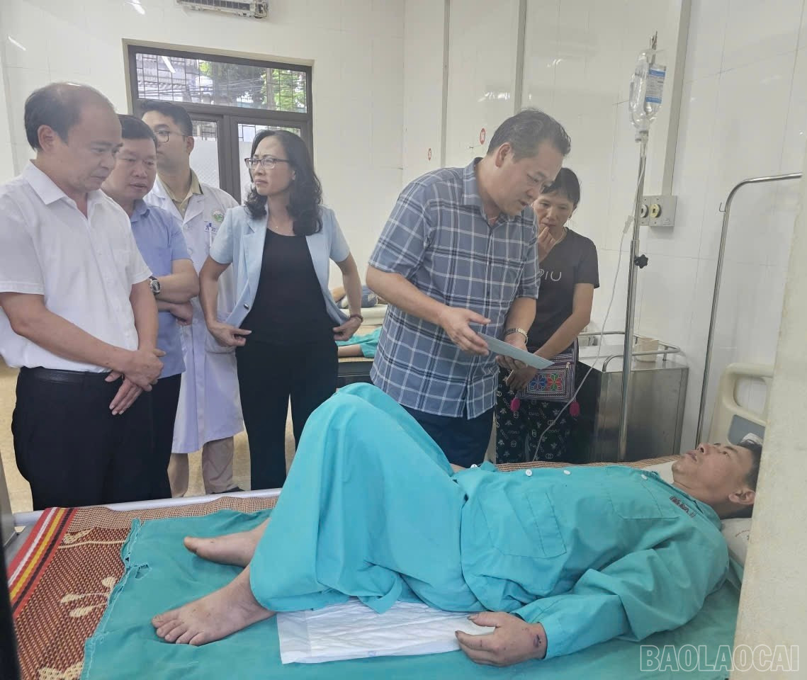 Trước đó, đồng chí Nguyễn Tuấn Anh - Phó Bí thư Tỉnh ủy đã đến thăm hỏi, động viên hai nạn nhân bị thương bởi mưa lũ tại Bệnh viện Đa khoa số 2 tỉnh Lào Cai.