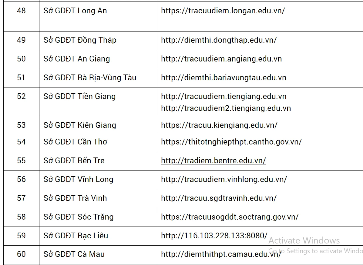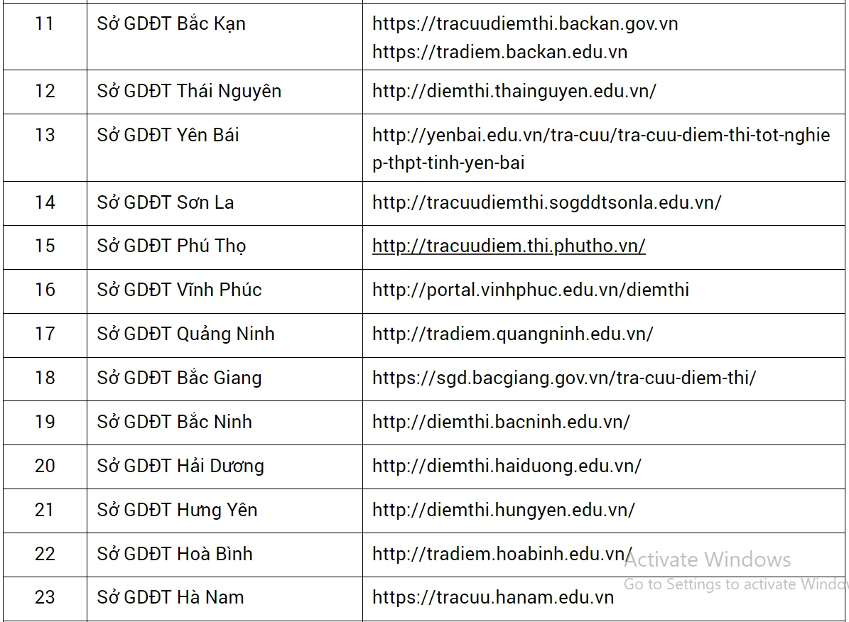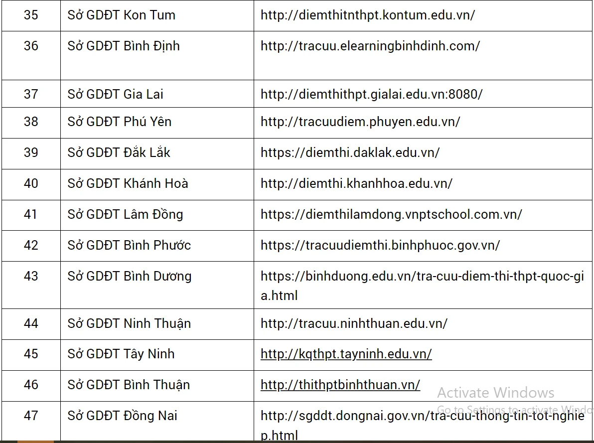 Bước 1: Truy cập vào Trang thông tin của Sở GDĐT các tỉnh, thành phố nơi thí sinh đăng ký dự thi theo danh sách dưới đây: