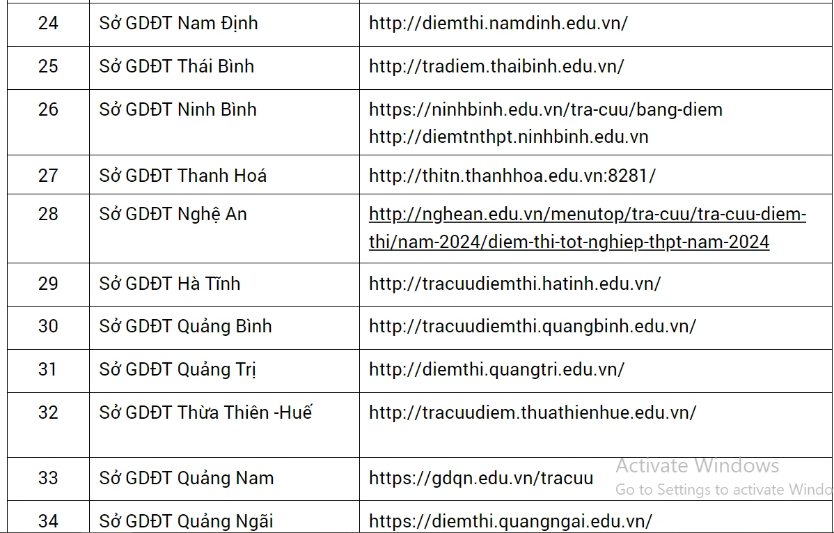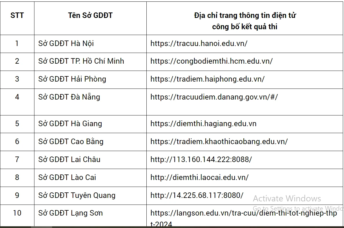 Cách 3: Tra cứu điểm thi tốt nghiệp THPT năm 2024 qua Trang thông tin của Sở GD&ĐT tỉnh, thành phố