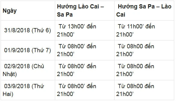 Lịch cấm xe từ 04 trục trở lên lưu thông trên QL4D trong kỳ nghỉ lễ 2/9 cụ thể như sau: