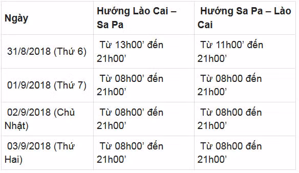 | Sẽ cấm xe tải từ 4 trục trở lên lưu thông trên Quốc lộ 4D (đoạn từ đèo Trạm Tôn, huyện Sa Pa đi thành phố Lào Cai) trong dịp nghỉ Lễ 2/9). |