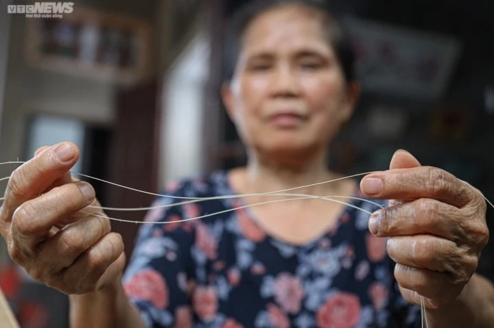 Những sợi mây mỏng như tơ đạt yêu cầu, được bà Tiến kiểm tra cẩn thận.