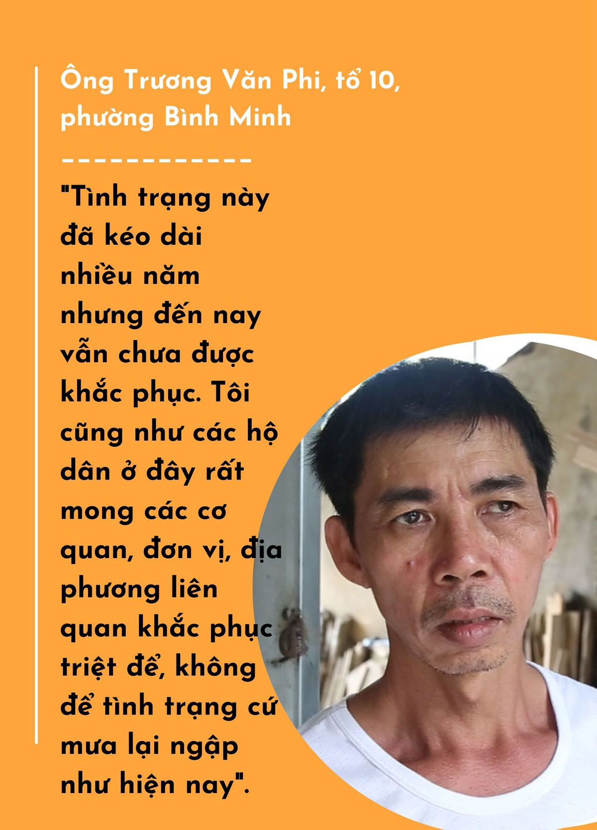 Hơn 1 tháng nay, khu xưởng mộc rộng khoảng 100 m2 của gia đình ông Trương Văn Phi, tổ 10, phường Bình Minh ngập trong nước. Hàng trăm thanh gỗ mà ông Phi đã phơi khô, chuẩn bị đóng đồ nội thất cho khách nay bị ngâm nước nhiều ngày, nguy cơ mục nát rất cao. Ông Phi cho biết: Nhà tôi nguồn thu nhập từ nghề mộc, nhưng hơn một tháng nay không làm gì được do nước ngập hết xưởng. Tình trạng này đã kéo dài nhiều năm nhưng đến nay vẫn chưa được khắc phục. Tôi cũng như các hộ dân ở đây rất mong các cơ quan, đơn vị, địa phương liên quan khắc phục triệt để, không để tình trạng cứ mưa lại ngập như hiện nay.