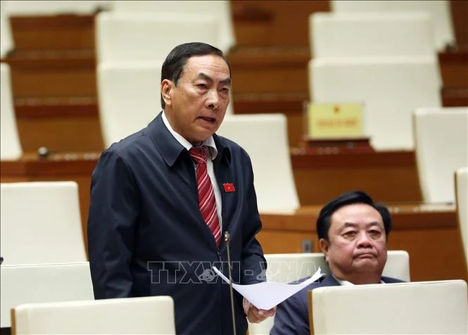 Đại biểu Quốc hội tỉnh Đồng Tháp Phạm Văn Hoà phát biểu. Ảnh: Phạm Kiên/TTXVN
