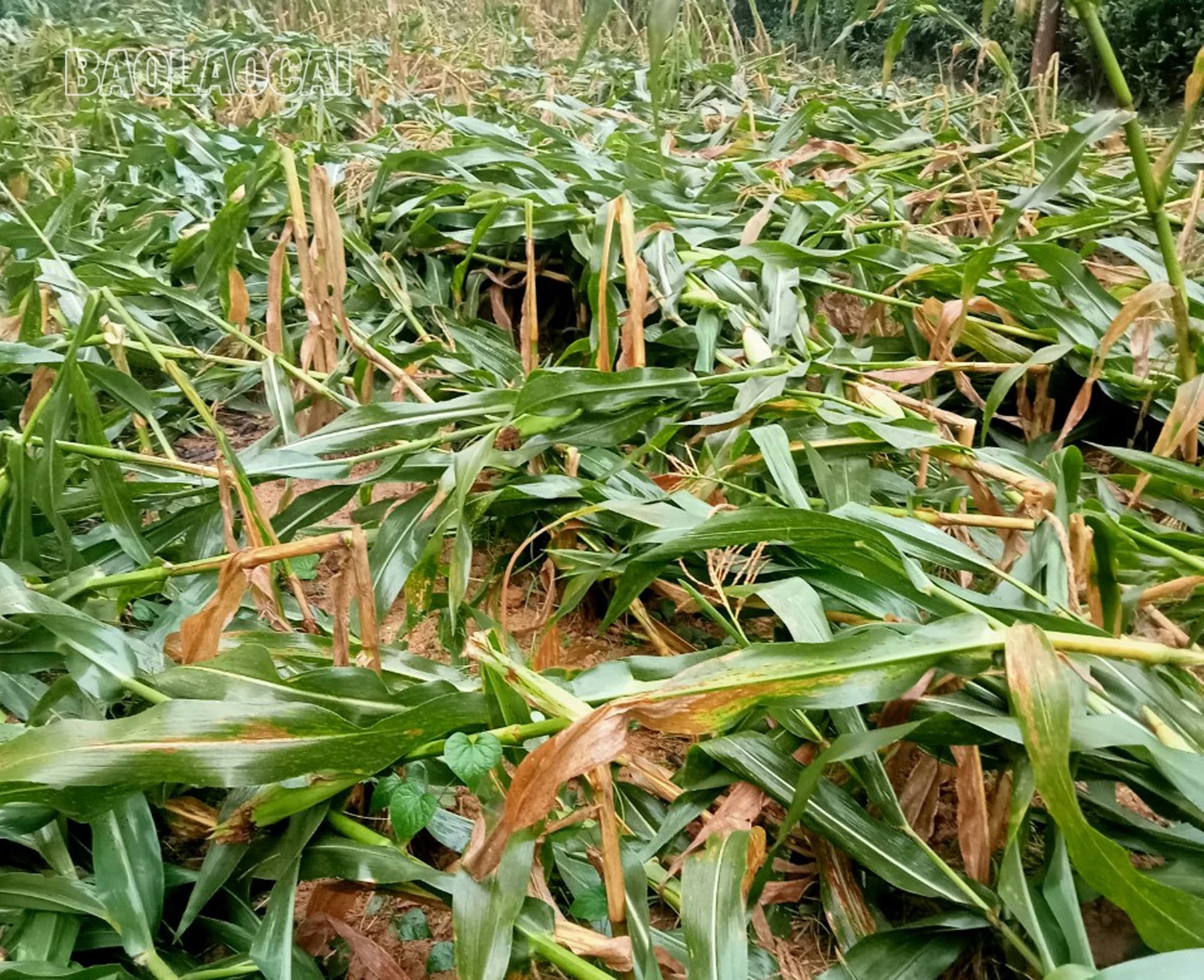 Khoảng 55 ha hoa màu bị gãy đổ, trong đó có 16,48 ha lúa, 29,94 ha ngô, 3,5 ha chuối, 1,5 ha sắn, 1,5 ha bồ đề.