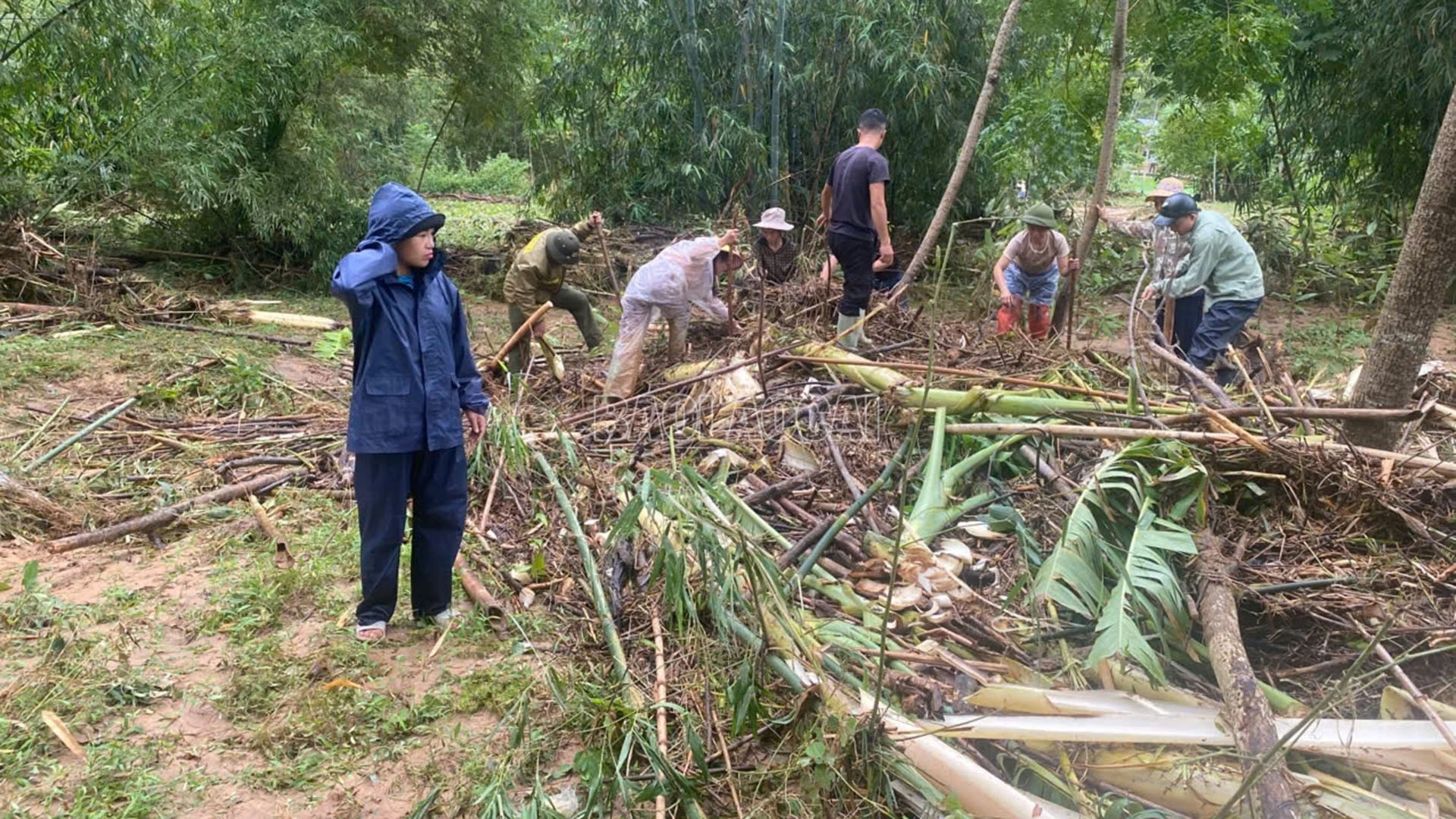 Hiện xã đang huy động nhiều lực lượng tham gia: Hội Nông dân, Hội Phụ nữ và người dân các thôn bản tập trung dọn vệ sinh môi trường, khơi thông kênh mương, thu dọn hoa màu hư hại; đoàn thanh niên san gạt đất đá, phát dọn cây cối đổ ngã; lực lượng dân quân tự vệ phối hợp công an xã tuần tra, kiểm soát các điểm sạt lở, cắm biển cảnh báo nguy hiểm, hướng dẫn phương tiện, nhất là ô tô, xe tải trọng lớn, hạn chế lưu thông qua những đoạn đường hư hỏng.