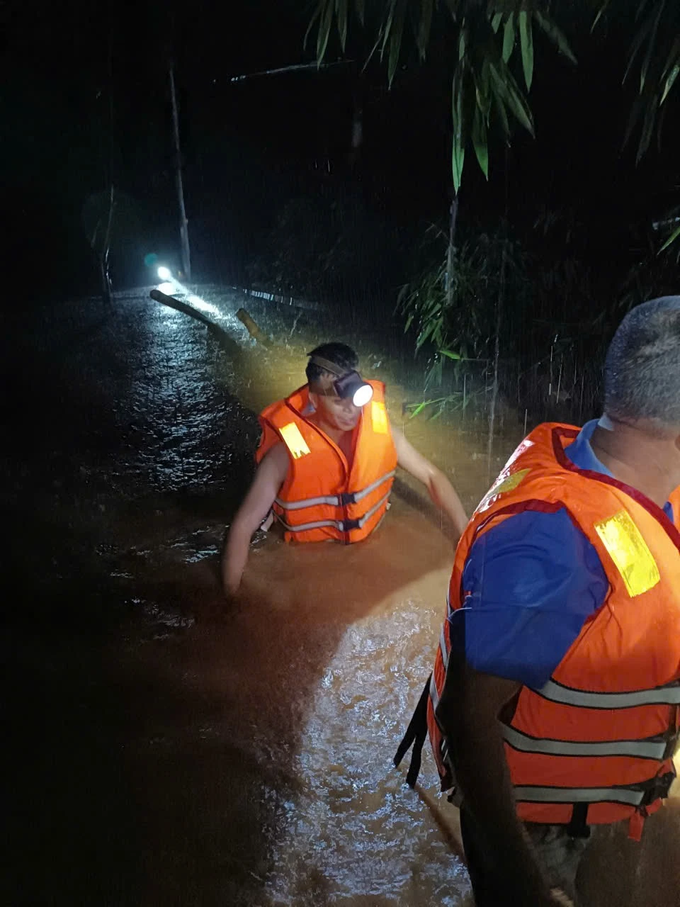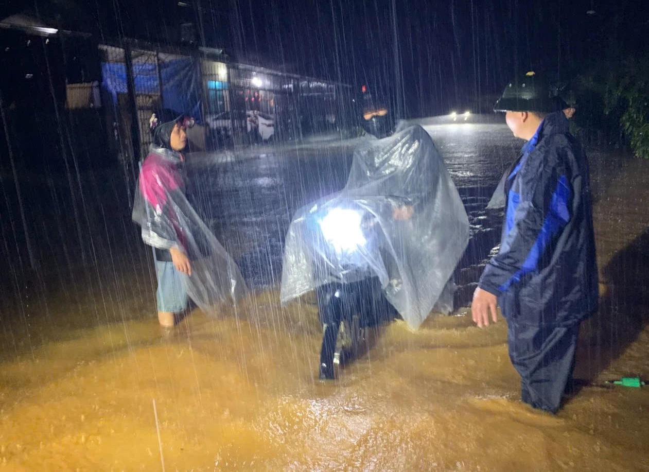 Mưa lớn trong đêm khiến nhiều tuyến đường bị chia cắt, công tác cứu hộ gặp nhiều khó khăn. Lực lượng công an, dân quân và cán bộ xã đang khẩn trương hỗ trợ sơ tán người dân ra khỏi khu vực nguy hiểm.