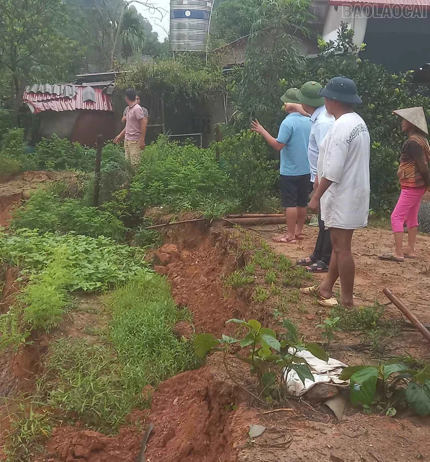 Lãnh đạo UBND xã Lục Yên kiểm tra thực địa điểm có nguy cơ sạt lở.