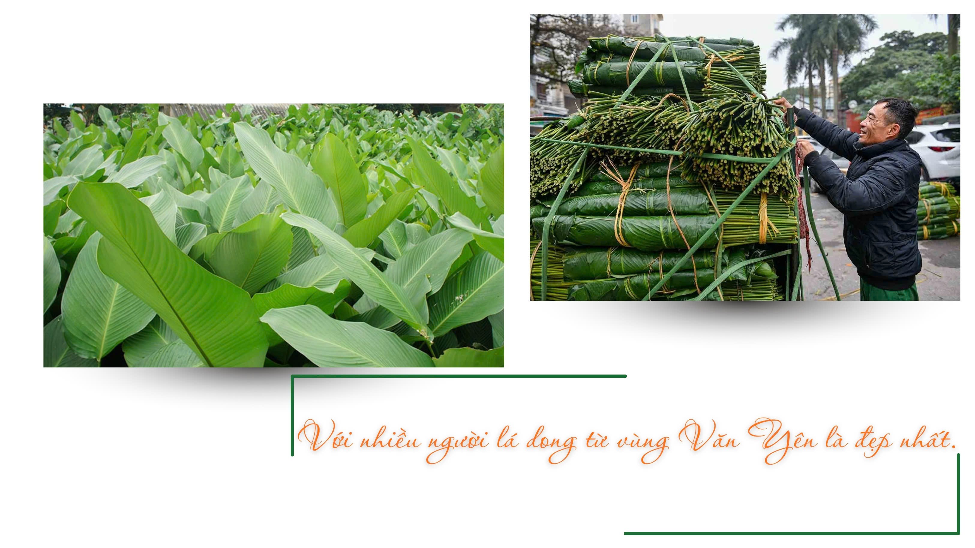 Bà Vân chia sẻ: “Tôi bắt đầu đi chợ mua lá từ 24 - 25 Tết. Lúc đó có nhiều sự lựa chọn nên mình sẽ chọn những bó lá đẹp, phù hợp với kích thước bánh của gia đình. Lá từ vùng Văn Yên là đẹp nhất. Tôi nghe bảo lá dong toàn mọc tự nhiên trong rừng nên vì thế bánh chưng mới thơm như vậy”.