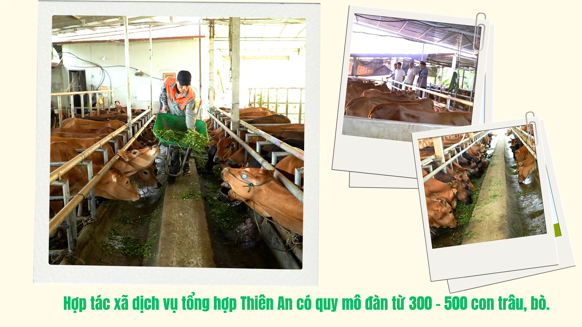 Tuy nhiên, với tầm nhìn dài hạn cùng sự chủ động trong chuyển đổi phương thức sản xuất, hợp tác xã đã mạnh dạn đầu tư, mở rộng quy mô và từng bước nâng cao hiệu quả. Đến nay, quy mô đàn đã tăng lên khoảng 300 - 500 con, đánh dấu bước phát triển rõ rệt cả về số lượng và chất lượng. Mỗi năm, hợp tác xã xuất bán hàng trăm con trâu, bò thịt ra thị trường, mang lại lợi nhuận trên 3 tỷ đồng.
