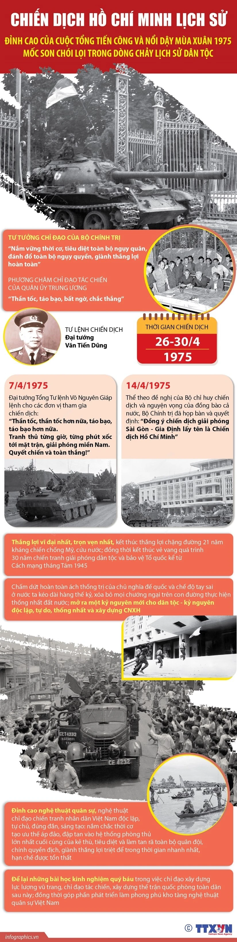 Chiến dịch Hồ Chí Minh mãi mãi đi vào lịch sử, khẳng định tầm vóc vĩ đại của cuộc kháng chiến của nhân dân Việt Nam chống đế quốc Mỹ xâm lược, để lại nhiều bài học có giá trị lý luận và thực tiễn.