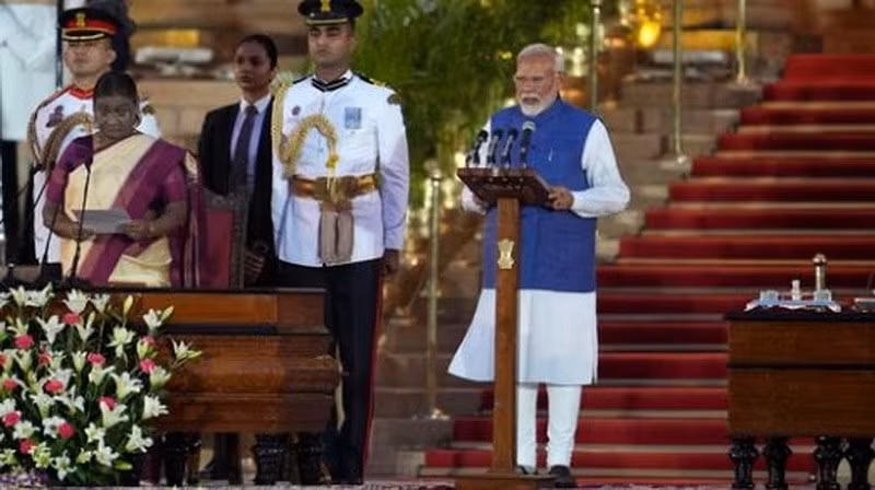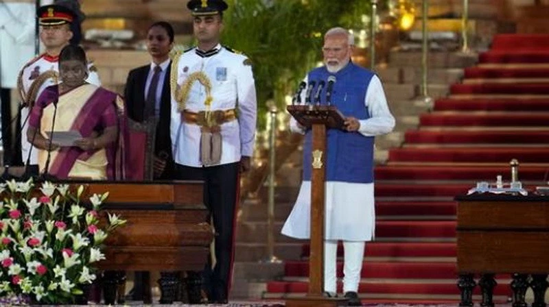 Ông Narendra Modi đã tuyên thệ nhậm chức Thủ tướng Ấn Độ tại Phủ Tổng thống ở thủ đô New Delhi, dưới sự chủ trì của Tổng thống Draupadi Murmu.