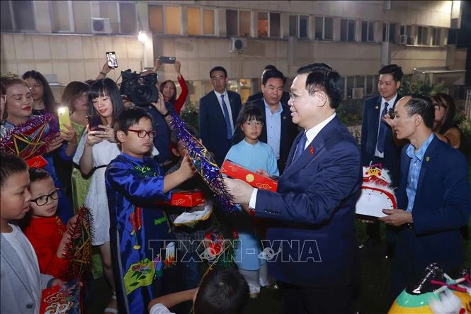 Nhân dịp này, trong không khí rộn rã của màn múa lân sư rồng và các tiết mục văn nghệ mang đậm dấu ấn văn hóa Việt Nam, Chủ tịch Quốc hội và Đoàn đã tặng quà, cùng vui Tết trung thu với các cháu thiếu nhi.