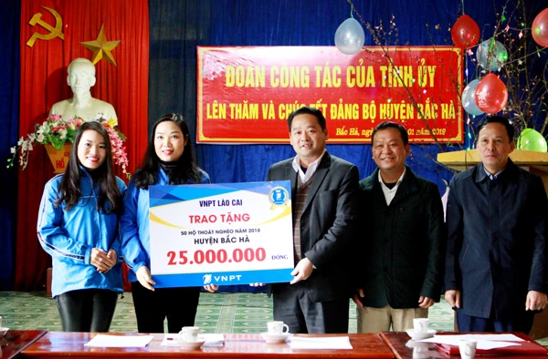 Nhân dịp này, Công ty Viễn thông Lào Cai (VNPT Lào Cai) đã tặng 25 triệu đồng cho những hộ dân có nhiều nỗ lực trong việc thoát nghèo (ảnh trên).