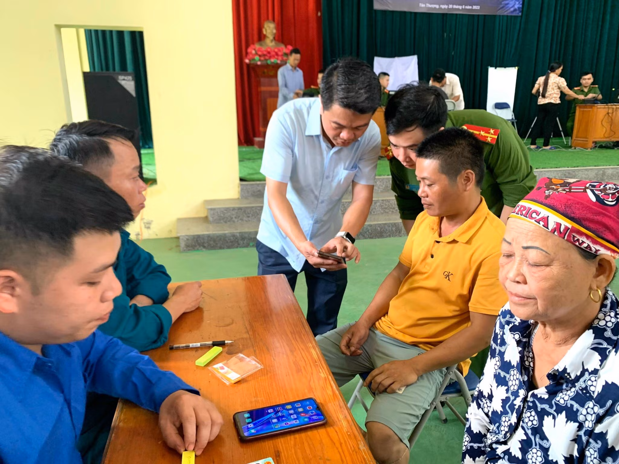 Tổ công nghệ số cộng đồng xã Tân Thượng (Văn Bàn) hướng dẫn cho người dân.