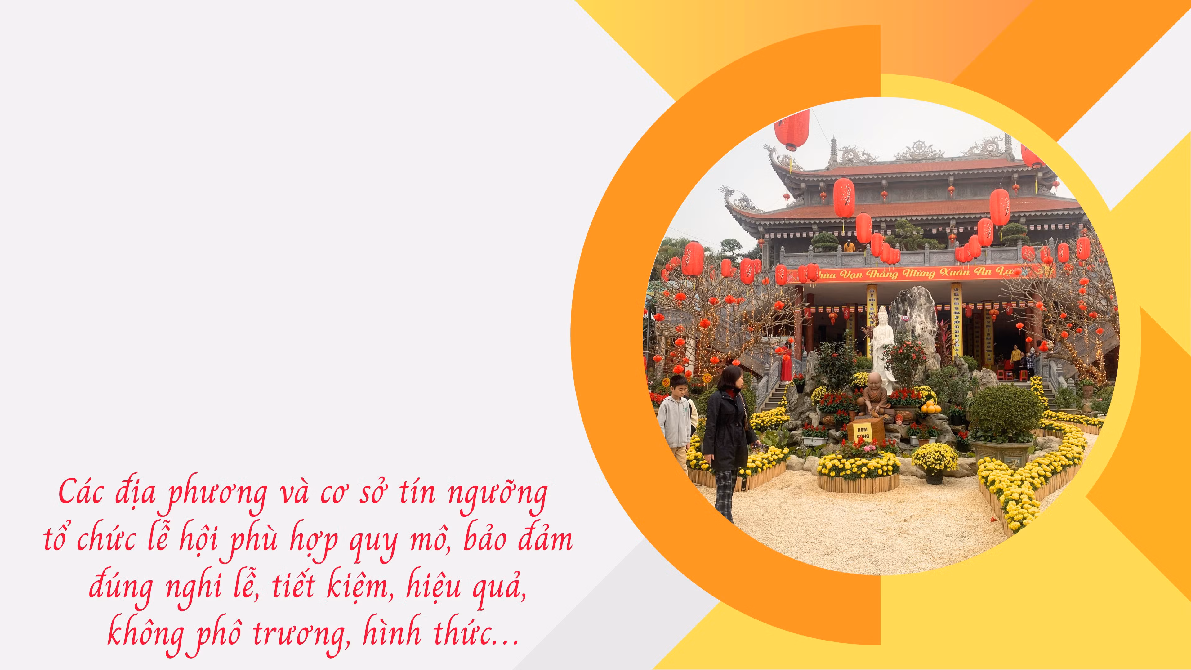 Lễ hội xuân là một trong những sinh hoạt văn hóa, tín ngưỡng quan trọng trong đời sống tinh thần của Nhân dân, phản ánh đậm nét bản sắc văn hóa truyền thống và lịch sử của mỗi vùng đất. Thông qua lễ hội, các giá trị văn hóa được gìn giữ, trao truyền từ thế hệ này sang thế hệ khác, góp phần bồi đắp tình yêu quê hương, đất nước và niềm tự hào dân tộc. Tuy nhiên, do diễn ra trong thời gian dài, phạm vi rộng, thu hút đông đảo Nhân dân và du khách tham gia, công tác tổ chức lễ hội luôn đặt ra yêu cầu cao về bảo đảm an ninh, an toàn và giữ gìn nếp sống văn minh.