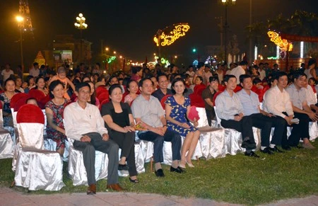 Các đồng chí lãnh đạo và đông đảo nhân dân đón xem chương trình.
