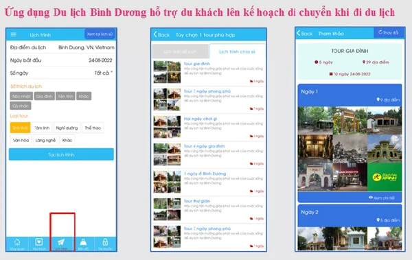 Cùng với đó, phần mềm ứng dụng (App) du lịch Bình Dương được đưa vào khai thác đáp ứng nhu cầu tìm kiếm thông tin về du lịch Bình Dương cho du khách. Ngoài tính năng tra cứu thông tin điểm đến, khách sạn, nhà hàng, địa điểm ăn uống, các chương trình vui chơi giải trí, các chương trình khuyến mãi… phần mềm ứng dụng này còn cung cấp các tính năng đặt dịch vụ (phòng, tour) trực tuyến cho người dùng, cung cấp qua hai nền tảng hệ điều hành IOS và android.