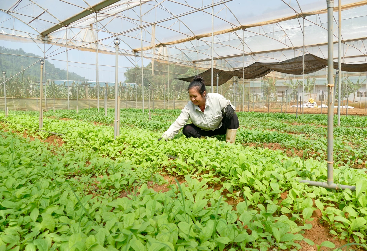 Các loại rau được trồng trong nhà lưới theo hướng VietGAP của gia đình bà Thu.