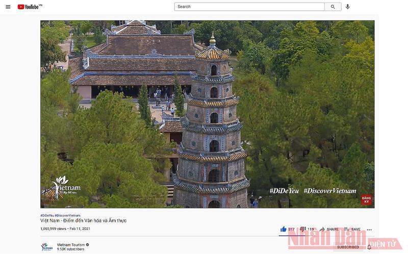 Trước đó, chương trình truyền thông du lịch Việt Nam trên nền tảng số YouTube được bắt đầu triển khai từ đầu năm 2021 với việc ra mắt clip có chủ đề “Việt Nam - Đất nước, con người” vào ngày 7-1. Chỉ sau một tháng, clip cũng đã thu hút hơn 1 triệu lượt xem; kênh YouTube của Tổng cục Du lịch đã tăng thêm hơn 2,5 nghìn lượt theo dõi.