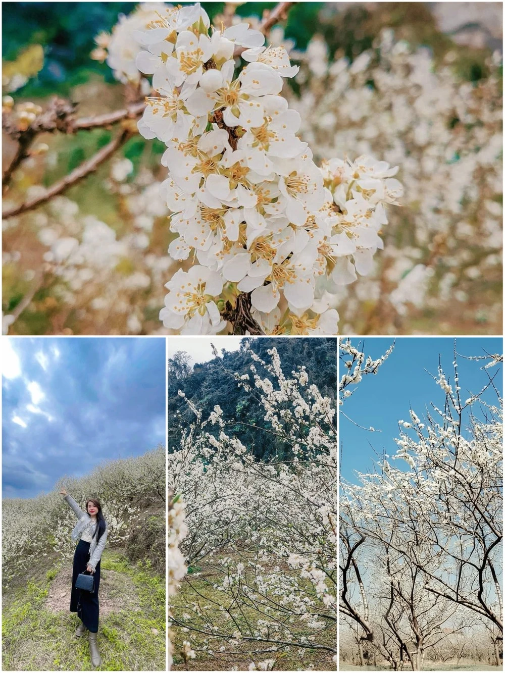 Bên trên đồi là bạt ngàn hoa mận trắng.