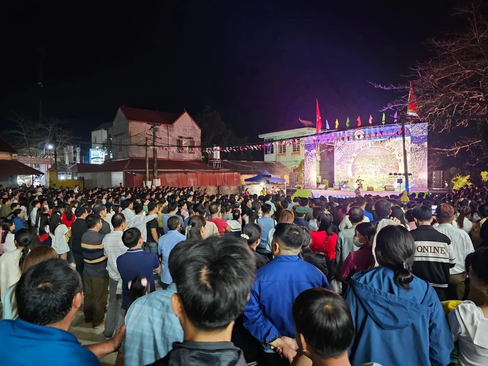 Hội thi hát sloong hao tại trung tâm xã Tân Sơn tối 20/2, hàng nghìn người đổ về xem.