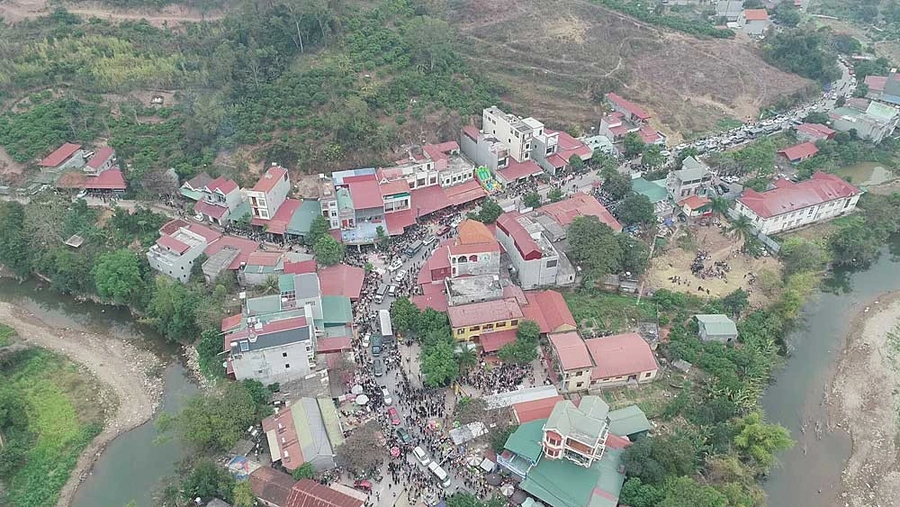 Đó là chợ tình Thác Lười ở xã Tân Sơn, huyện Lục Ngạn (tỉnh Bắc Giang). Hôm nay 21/2, tức ngày 12 tháng Giêng năm Giáp Thìn, Chợ tình Thác Lười bắt đầu khai hội, diễn ra 3 ngày. Đây là phiên chợ giao duyên của những người Nùng, Tày...