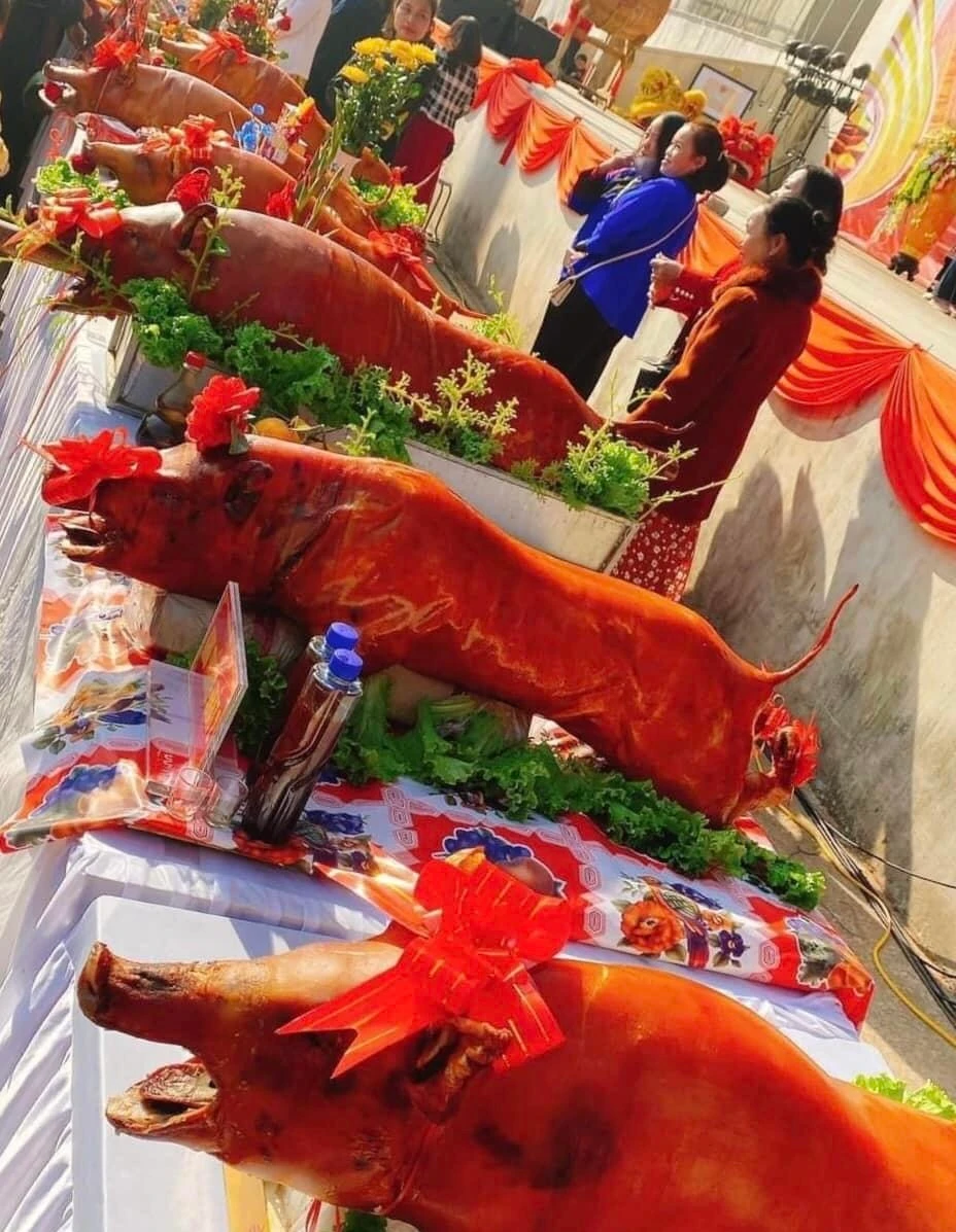 Từ chiều 20/2, người dân ở các xã đã đổ về chợ tình Thác Lười để mua bán, vui chơi, ăn uống (món phổ biến là heo quay).