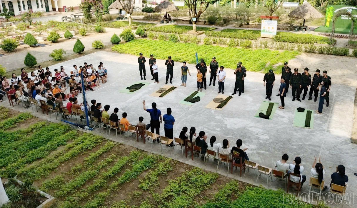 Tiểu đoàn phối hợp với Đoàn thanh niên xã Bảo Thắng rèn luyện kỹ năng sống cho học sinh tiểu học và THCS trên địa bàn xã.